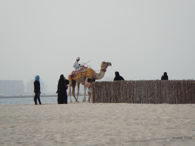 Jak widać poniżej: obok nowoczesności zderzenie z tradycją. Wielbłąd turystyczny i kobiety w czadorach. Zresztą tych zderzeń chodziły pełne ulice, pachnące perfumami i parkujące Porche i Ferrari na granitowych chodnikach i podjazdach hotelowych......