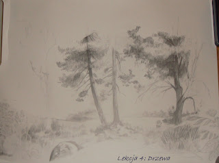 Generalnie szkic wyszedł śliczny, sama kompozycja okropna. Tzn po dwóch godzinach prowadzący zasugerował abym 2/3 wygumkowała i narysowała od początku. Hmm... jakby tu określić stan aktualny??? Wygumkowane? Wymazane? Blank page? Tabula rasa? Poza 1/3 rysunku pozostałego po gumkowaniu nic nie przybyło na kartce. NIE BĘDĘ SIĘ Z TYM MĘCZYĆ.